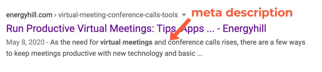 Make sure these meta descriptions for pages and blogs include your keyword or keyphrase and keep it under 160 characters — the quicker they get to the point, the better.