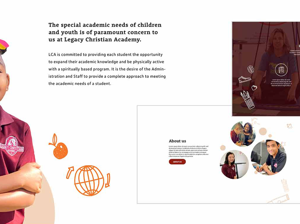We began by creating the sitemap and wireframes for the website, using custom photography and video that we shot at the school. We wanted to add a calendar function for the school to schedule events, and ensure that the website looked great across all devices. By pairing playful iconography with bright colors and images of campus life, we were able to portray the fun and educational environment at LCA.